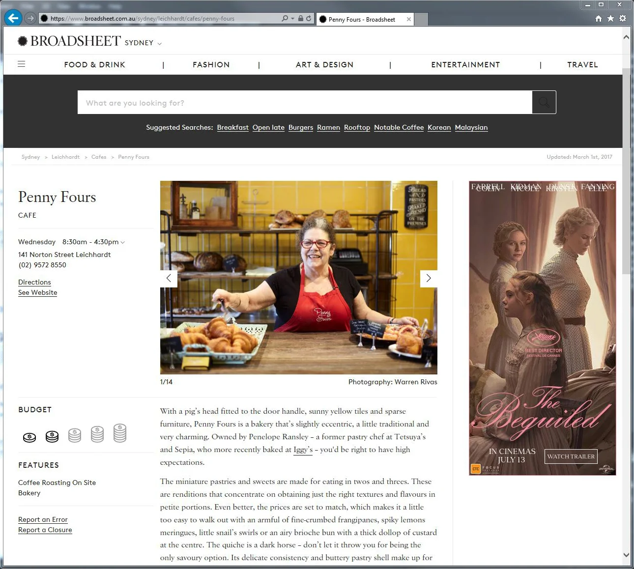 Penny Fours March 01, 2017 Photoshoot of Penny Fours for Broadsheet Media Sydney Click here for original post I also posted an outtake on my Instagram